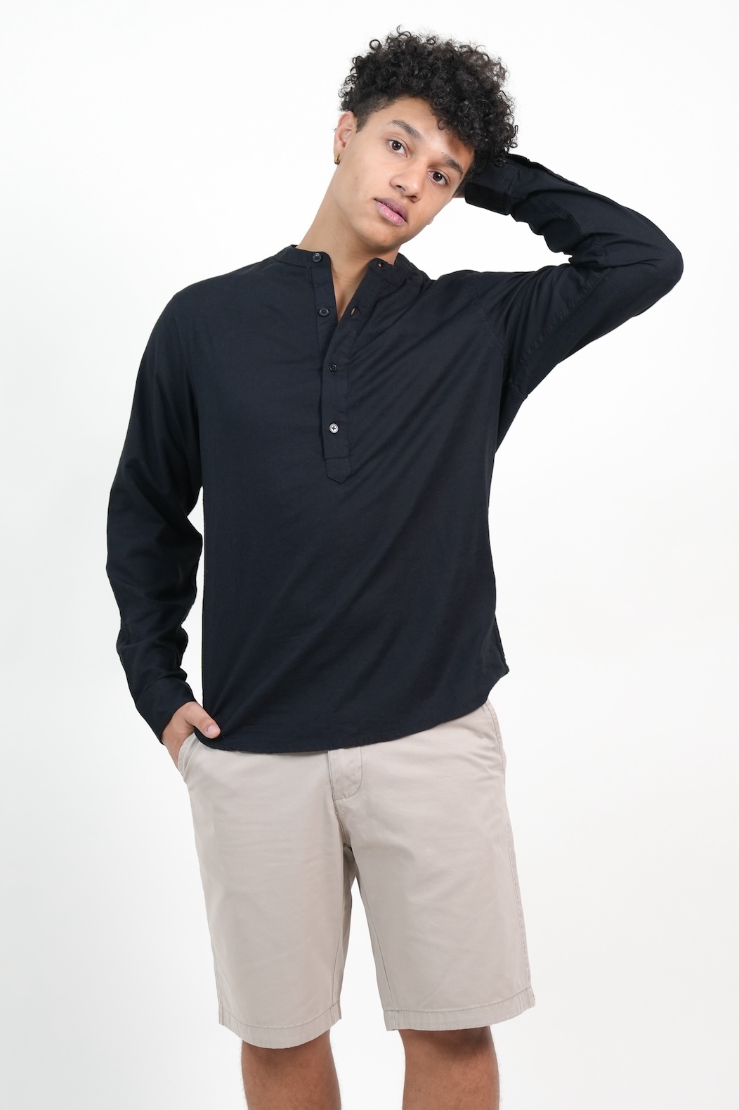 CAMISA CUATRO BOTONES LINO NEGRO XS