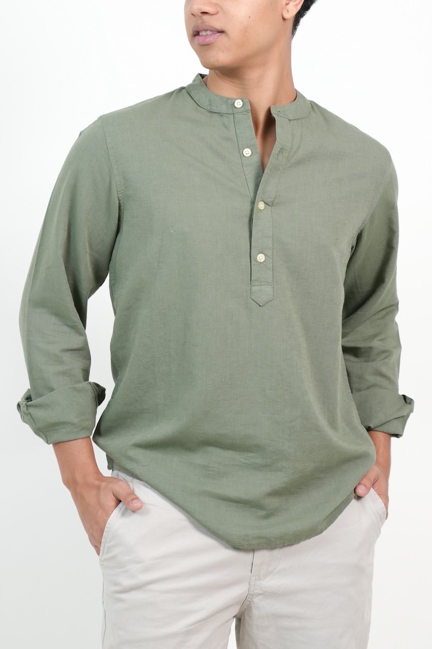 CAMISA CUATRO BOTONES LINO VERDE SAFARI 2XL