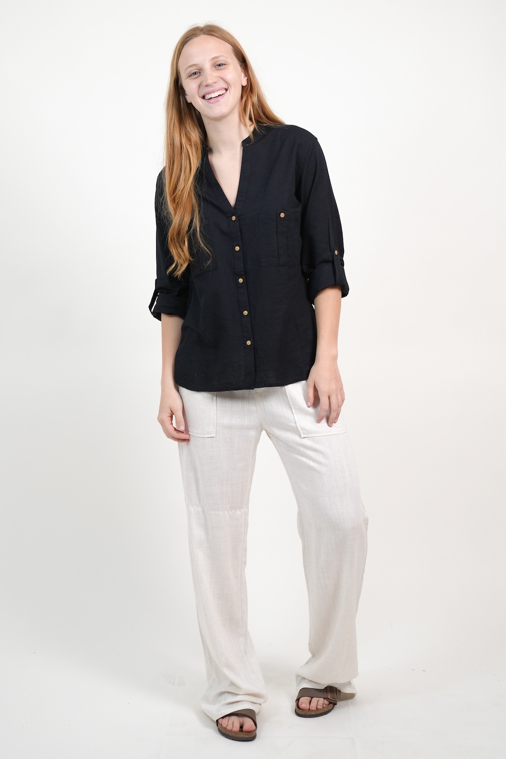 CAMISA DOS BOLSILLOS LINO MUJER NEGRO XL