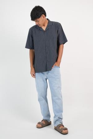 CAMISA LINO MANGA CORTA RAYADA MARINO OSCURO 2XL