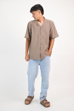 CAMISA LINO MANGA CORTA RAYADA MARRON 2XL