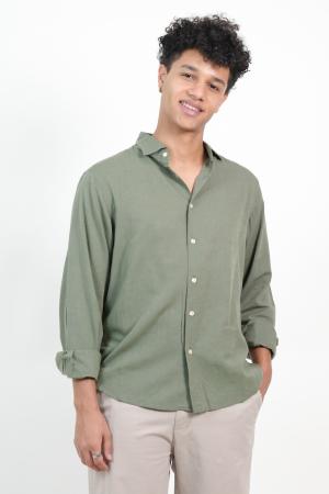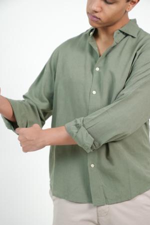 CAMISA MANGA LARGA LINO VERDE SAFARI XS