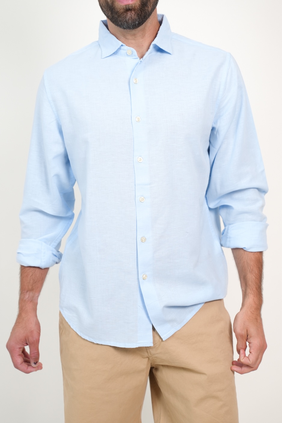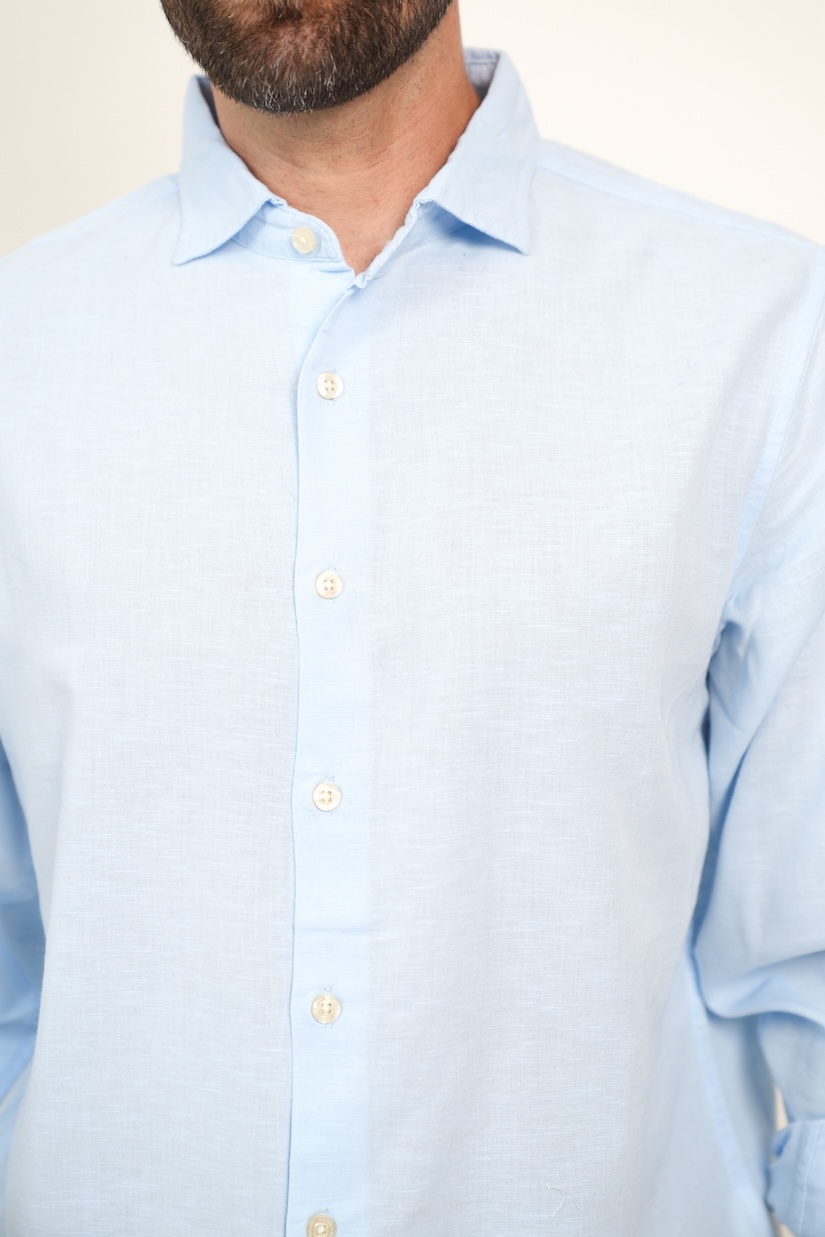 CAMISA MANGA LARGA LINO CELESTE XS