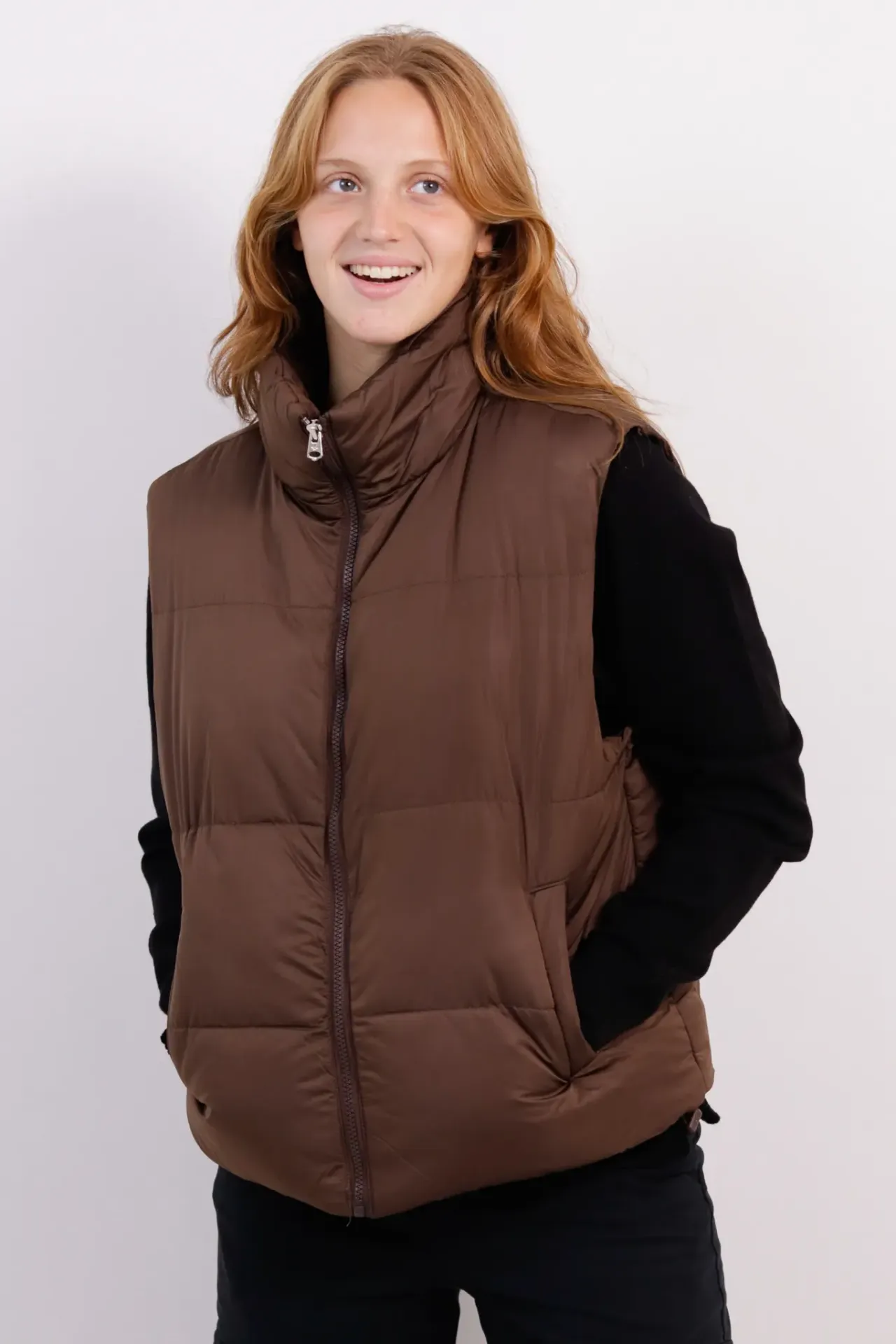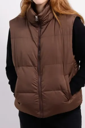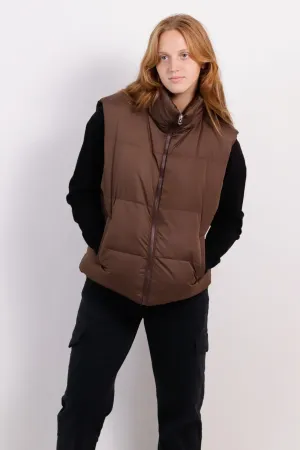CHALECO PUFFER MUJER MARRON S