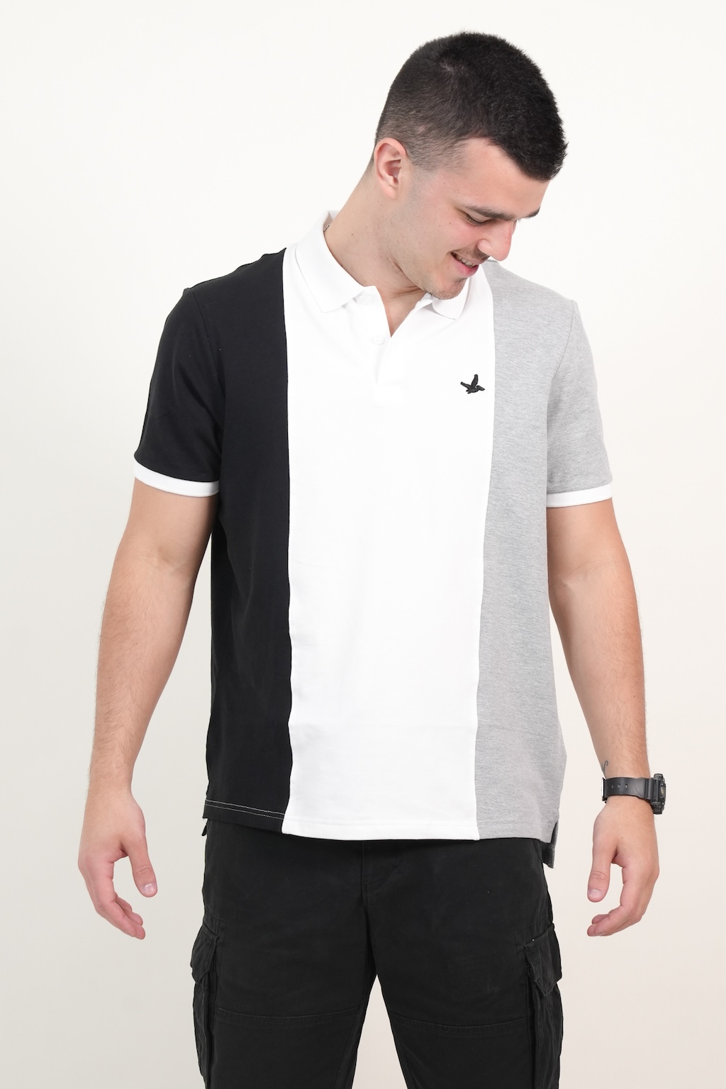 POLOS PIQUE RAYAS VERTICALES NEGROBLANCOGRIS L