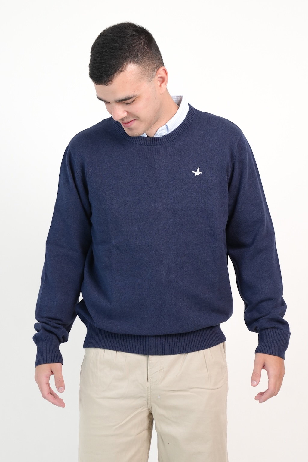 SWEATER BASICO REDONDO MARINO JASPEADO XS
