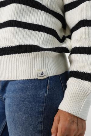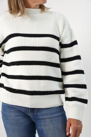 SWEATER PUNTO CON RAYAS MUJER NATURAL/NEGRO L